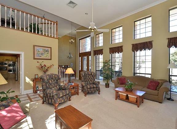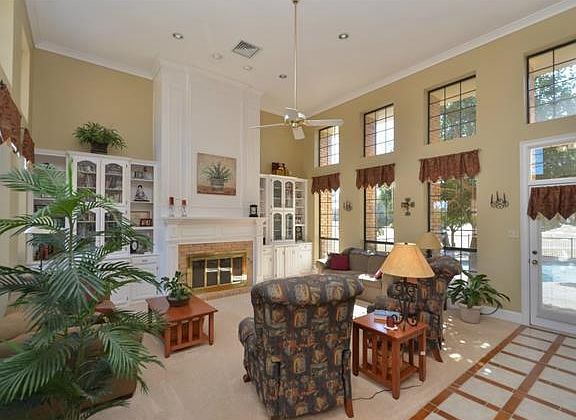 Fabulous! Located on 7th hole of Oakmont Golf Course with gorgeous pool. Dramatic 2 story entry through beautiful leaded glass door.Soaring windows provide natural light in living room.Double crown molding, large gourmet island kitchen with lots of granite counter space, many cabinets and double ovens.Luxurious master retreat down and 2nd bedroom down with bath making a nice mother-in-law suite.Lg. bedrooms,skylights.Updated and move-in ready.