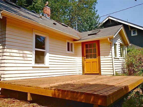 Affordable, updated, cottage on large lot, close to town! Newer stackable W/D, SS appliances included. 2 bedrooms downstairs, 3rd upstairs with skylights and attic storage. Fir hardwood floors throughout with tile in kitchen and bath. Newer vinyl windows. Huge backyard with swing set, sunny back deck, and lots of room to garden. Open house Sat. 5/12 1-3pm