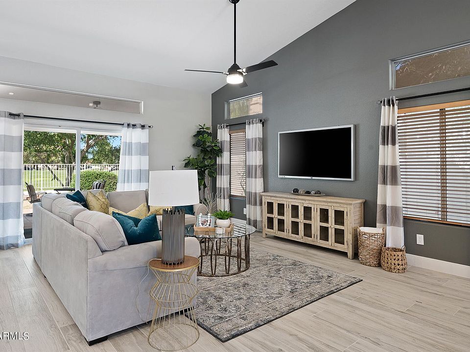 Welcome to your beautiful Oasis at the ''Park''! This home is newly remodeled and is absolutely stunning inside and out. Imagine never wanting to leave your home because you feel like you're living at a fine resort w/beauty & style. The Remodel was completed from Jan-April 2022-over100K in 2022- including-New roof, New exterior paint, New interior 3 tone designer paintGorgeous long wide plank tile throughout 59'' x 9.5'' plank neutral wood-like tile $20K just in flooringAlone w/labor & materials, 5.5'' flat baseboards, Primary bath shower now a zero entry w/bench seat, quartz counters w/double sinks, gorgeous designer mirror, Breathtaking freestanding tub w/tub filler, recessed lighting & more;Hall bath shower also redone in stunning tile..