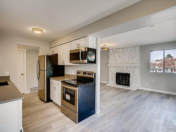 This beautifully remodeled condo is waiting for you to move right in. The living room features new laminate wood flooring , wood burning fireplace with brick hearth and mantle. The living room opens through sliding glass doors to a large covered deck with plenty of room for entertaining. The new kitchen features new upper and lower cabinets with brushed nickel hardware, quartz countertops , new sink, & quartz back splash. Kitchen has all new stainless steel appliances and microwave. New lighting throughout the condo. The flooring throughout the condo has laminate wood flooring with a very contemporary feel. The updated bath has custom tile work in the shower, a new vanity , a new tub and quartz countertop and sink with new mirrors and lighting. The large master bedroom has laminate wood flooring, new paint and a large walk in closet with plenty of storage. The bedroom will easily accommodate a King bed, dresser and side tables. The laundry room has a place to put your washer and dryer, and a new furnace and space for more storage. Located in coveted Cherry Creek School district and close to parks, dining and shopping!