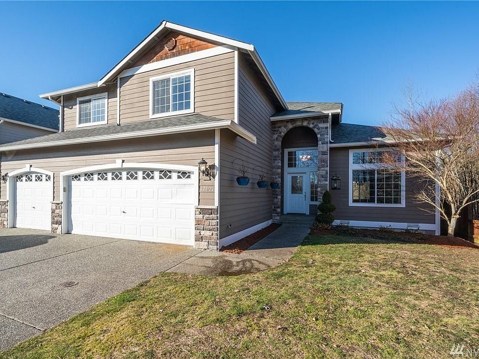 A very rare find with exceptional location, spacious light filled former model home in Magnolia Meadows on a level secluded manicured lot, offers living at its finest & reflects the pride of ownership. Gleaming hardwood floors starting at the entry, compliment the open concept main floor living spaces. Spacious kitchen w/Island, granite & SS appl's. Upstairs find a huge master retreat, 5pc bath, WIC, 3 additional BR's & bath. Three car garage & RV parking. Walk to park. Easy access to 9 & I-5.
