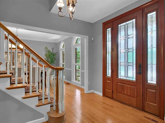 Beautiful two-story home tucked away in a cul-de-sac with a tranquil wooded lot. The home features an gorgeous, family room boasting expansive bookshelves, along with a living room, dining room, and lower level rooms for spacious living and entertaining. The kitchen has, 42 inch cabinets, a Silestone counter top and center island, stainless steel appliances, breakfast room, and a walk-in wet bar. Beautiful hard wood floors throughout much of the home. The large Master Suite has Coffered Ceiling, a walk-in closet, and a double sink and separate soaking tub and shower in the updated Master Bath. The lower level has entertainment space for your family, a bonus room for exercise or office space, and a bedroom with a full bath. The home is completed with a breathtaking and functional back yard!
