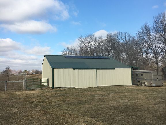 Log home with 2 barns, fenced and cross fenced for horses or whatever, all electric with wood stove insert in great room, connection available for another in basement. Unfinished basement. Recently had solar panels installed on one of the barns. New roof June, 2018.
