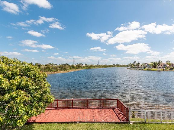 You won't find a better view than this house on the lake. Beautiful 2 story corner lot home with the biggest backyards in the neighborhood. Screened in patio, wooden dock, and more than enough space for a pool. Large primary bedroom with walk in closet, updated bathroom and massive private balcony. overlooking the lake. Impact window plus accordion shutters, recently changed A/C, sprinklers that pump water from the lake so low water bill, and a mango tree that can feed an army. House is in great shape and well taken care of. Separate fridge and freezer in garage do not convey.