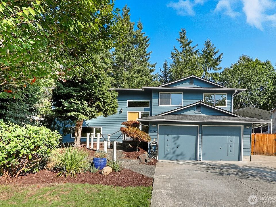 Spacious and full of natural light, this 4-bedroom, 3-bath home sits on a large lot on quiet street. The main floor features large living room with vaulted ceilings that opens to a remodeled kitchen and dining room, plus gas fireplace for cozy gatherings. Upstairs offers three bedrooms, including a primary suite with built-in closet system. The lower level provides a generous family room with another gas fireplace, full bathroom and 4th bedroom. Outside, enjoy a composite deck with a versatile covered patio below. Hot tub and three outbuildings for storage, hobbies or playhouse. Large backyard for play and exploration. Covered RV parking, a two-car garage, and abundant off-street parking add unmatched convenience. Welcome home!