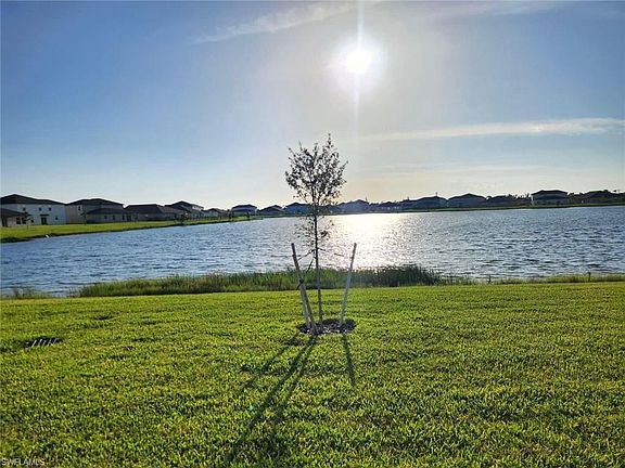 Located in Crane Landing, a master-planned community in North Fort Myers, this 2025-built single-family home offers 4 bedrooms, 2.5 baths, a den, and 1,885 sq. ft. of living space with a 2-car garage. The residence features an open-concept design with a kitchen that includes a quartz island, stainless steel appliances, white cabinetry, and walk-in pantry. Extended tile flooring flows throughout the main living areas, complemented by a formal dining space and bright family room with large windows and lake views. The owner's suite overlooks the lake and includes a walk-in closet and bath with dual sinks and shower. Three additional bedrooms, a second full bath, and ceiling fans throughout complete the upper level. Additional highlights include an indoor laundry room, auto sprinklers, shutters for storm protection, and a backyard with room for a pool. Community amenities include basketball, pickleball, and tennis courts, a soccer field, playground, underground utilities, and streetlights. Pets are permitted with HOA restrictions. Conveniently located near US-41, Cape Coral, Fort Myers Beach, Sanibel Island, and Downtown Fort Myers, this home combines modern construction, scenic lake views, and a desirable location.