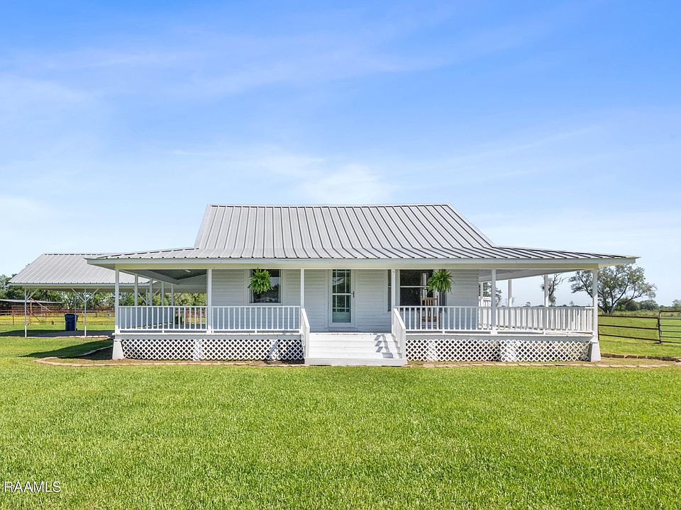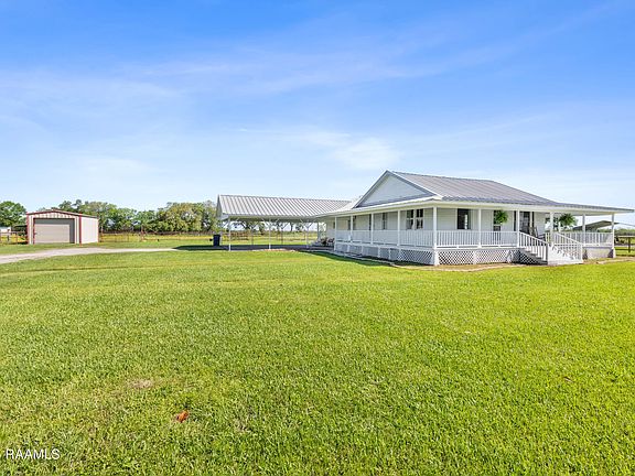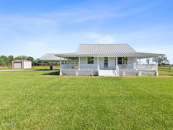 If you've always loved the 'Farmhouse Style', then you need to get a look at this home! Sitting on .76 of an acre this home is the true definition of a farmhouse. The freshly painted white wooden exterior grabs your attention to its full wrap around porch and long graveled driveway. The double carport keeps the feeling nice and airy plus doubles as a huge, covered patio. Inside you'll find freshly stained tongue and groove ceilings in the main living space with a separate dining area and open concept kitchen. As a special bonus, there is an adorable reading nook off the main space. Seller is leaving all kitchen appliances with this sale! Unlike most homes build back then, the primary bedroom features an en-suite bathroom and walk in closet! Bedroom two and bedroom three are down the hall with easy access to the hall bathroom. Bedroom three can also serve as an office or playroom. Laundry area is situated in bedroom three, so that all square footage can be utilized wisely. Added bonuses to the property include; SLEMCO electricity, located in flood zone X (not required to carry), a shop with roll up door, a second storage area with water well, public water, mechanical sewerage system, plumbing updated to PVC, metal roof (approximately 8 yrs old), and it's located down a quiet country road! This home may qualify for FHA, 100% RD, Conventional, and Cash purchases!(Seller has had an inspection done and is offering it for FREE to buyers. Please see attached Documents. Main water line valve has been addressed by the water company and dryer vent has been installed.)