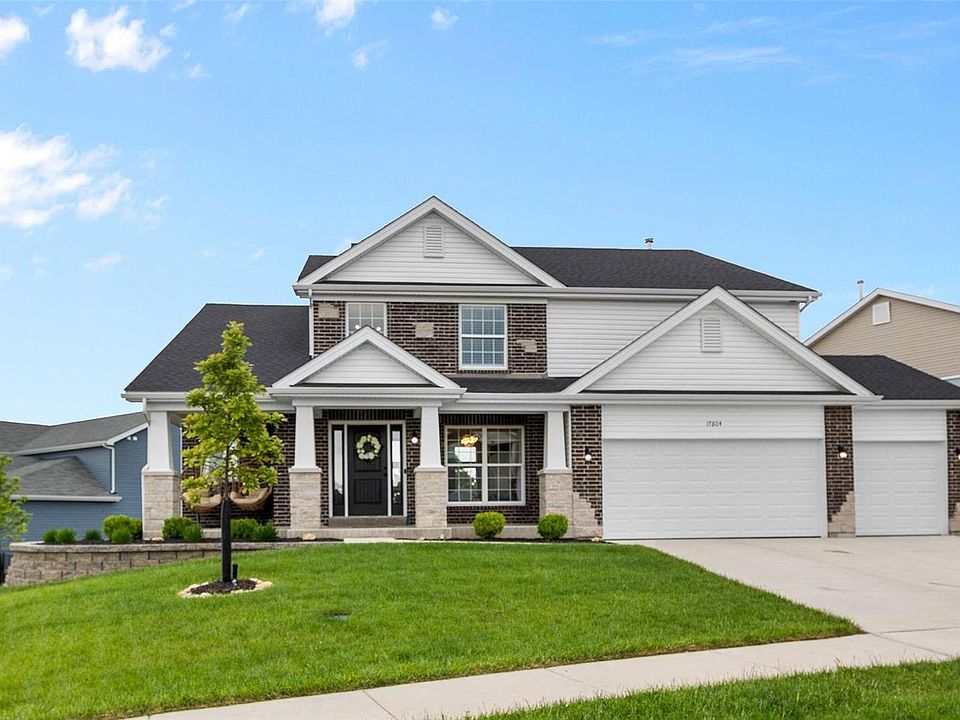 Experience luxury living in this 2-year-old, 1.5-story home with 4 bedrooms, 3.5 baths, and a 3-car garage! Enjoy the open layout with a two-story great room, large windows, and wood laminate flooring. The gourmet kitchen features a large island, quartz countertops, and stainless steel appliances. The master suite boasts a walk-in closet and luxurious bath with soaking tub and double vanities. Upstairs, find a Jack and Jill bath for bedrooms 1 and 2, and a private bath for bedroom 3. Additional features include dual zone HVAC, an open spindled staircase, main floor laundry, and an oversized composite deck perfect for entertaining. Located on one of the largest flat lots in the neighborhood with amazing sunset views overlooking the trees and a bonus view of Six Flags theme park in the distance. Don't miss out on this incredible home with easy access to Greensfelder bike trails and dog park!