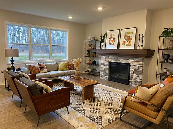 Charming Front Porch Open Kitchen with Oversized Center Island, Staggered Height Cabinetry, and Quartz Countertops Frigidaire® Stainless Steel Appliance Package with Counter-depth Refrigerator Luxury Vinyl Plank Flooring in Foyer, Kitchen and Dinette Flex Room on Main Level Oversized Mudroom with Spacious Closet Convenient Upper Level Laundry Room 2 Bedroom Suites Upper Level Loft Upper Level Jack & Jill Bath 9' Ceilings on Main Level with Knock Down Finish Hayfield® Vinyl Window Package Moen® Kitchen and Bath Faucets 3 Car Garage Lower Level with Recreation Room, Bedroom and Bath