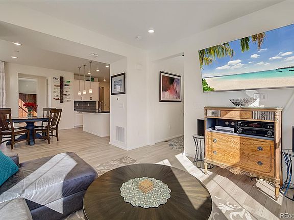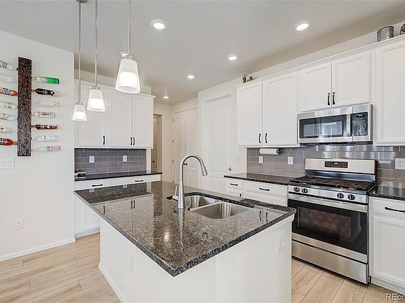 Modern two-story townhome in desirable Palisade Park! A raised front patio welcomes you into this charming residence. The main level includes high ceilings and large east-facing windows that promise natural light all day long. The kitchen boasts black granite countertops, stainless steel appliances, an island, and crisp white cabinetry complimented by a grey subway tile backsplash. The dedicated home office is nestled towards the back of the home and is perfect for today's remote work. Upstairs, the light and bright primary suite includes an elegant tray ceiling, a walk-in closet, and an ensuite bathroom with dual sinks and a step-in shower. Continue down the hall and find a convenient laundry room with additional cabinet space and two generously sized bedrooms separated by a full bathroom. The unfinished basement provides ample storage space or room to expand in the future! Dine al fresco and enjoy the fresh air on the side deck and fully-fenced patio! This serene area is complete with established garden beds, newly added turf, and plenty of space to entertain family and friends. Enjoy easy access to Denver and fantastic restaurant and shopping options! Recent updates include added drip system, primary bedroom closet system, 220V outlet for car charger in the garage, and more!