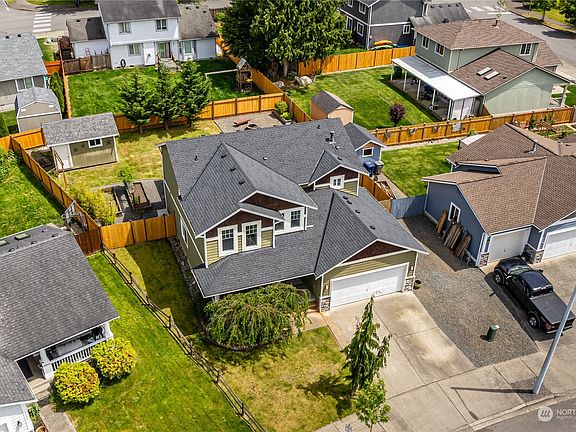 Nice Eagle Heights 2 story. Huge fenced back yard with garden shed, raised beds, fire pit, covered back deck. 4BR and 2.5BA 1932 sqft. Reclaimed wood wall in formal LR. Vaulted entry. Hardwood/laminates, tile entry, crown molding. Recent additions: heat pump/AC, Quartz countertops, furnace, laundry cabinets, pull out trays in kitchen. 2 car garage with attic storage. Possible room for small RV parking next to house?