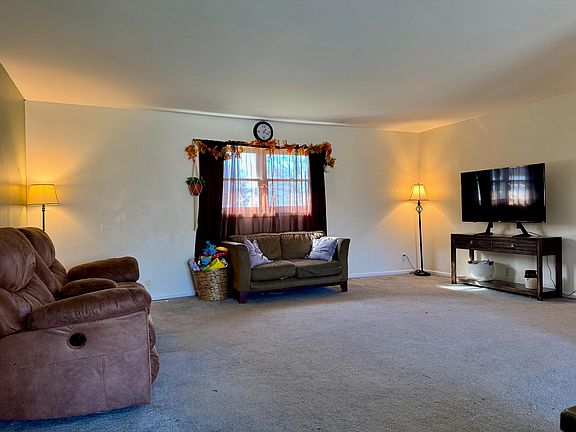 Spacious three bedroom, one and a half bath home with a two car attached garage. Over 2,700 sq. ft. of roomy living space on two levels with large size rooms, separate dining room, and a private main bedroom suite. Outdoor amenities include three acres with serviceable outbuildings . Kitchen and laundry appliances available with an acceptable offer.