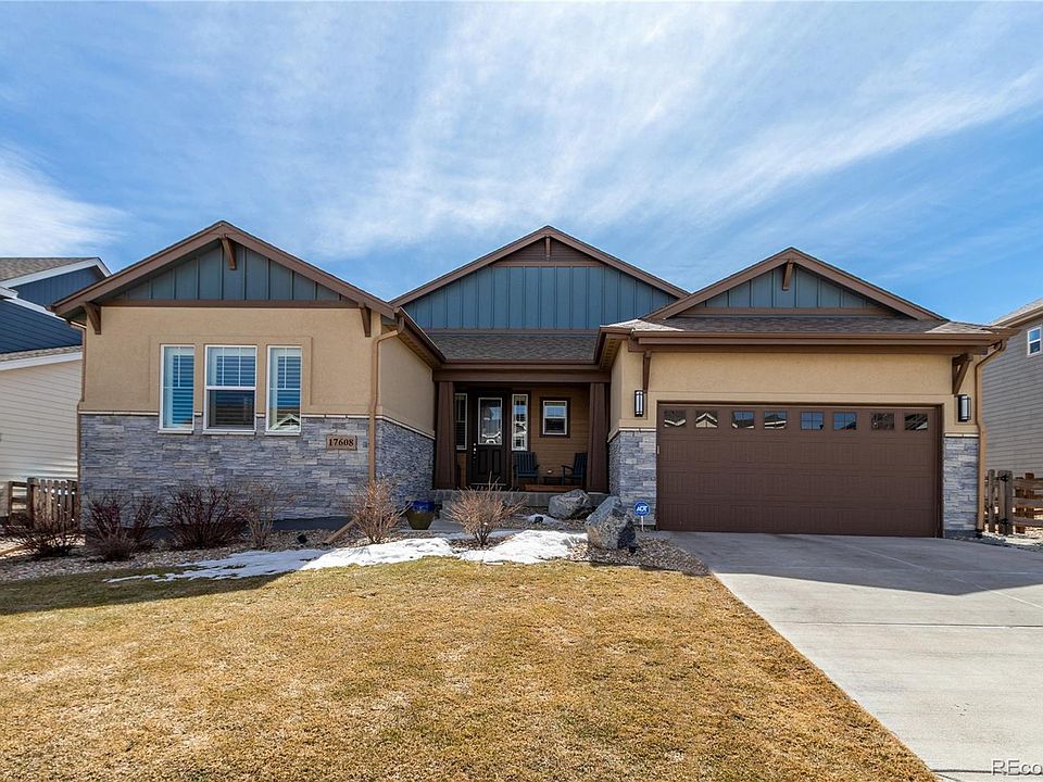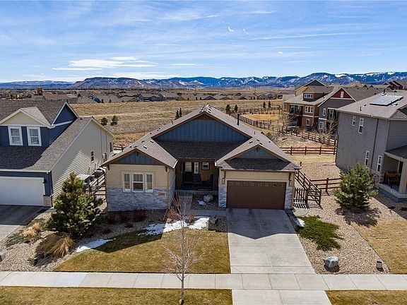 Don't miss seeing this fabulous 4 bedroom, 4 bathroom Ranch style home located in one of Arvada's desirable communities Leyden Rock.This home has over $150k in builder and homeowner upgrades throughout. As you enter the home the large foyer is welcoming to a spacious floor plan featuring a formal dining room and great room that share a cozy dual-sided gas log fireplace. The gourmet kitchen includes all upgraded appliances, granite countertops and island, tile backsplash, pot filler, eating space with plenty of cabinets. From the kitchen eating space you access the backyard to a 13x17 covered concrete patio with a ceiling fan and audio speakers. From the covered patio a flagstone pathway leads you to a separate sitting area to enjoy the southern exposure of breathtaking panoramic open space mountain and city views of the front range. Wonderfull for entertaining or just relaxing. Let's not forget to mention the section of maintenance free artificial grass. The main floor plan also has 3 bedrooms which includes the master bedroom retreat. The master bedroom also enjoys the panoramic backyard views with an access door leading to the covered patio. One of the bedrooms with french doors is currently being used as study. The guest bedroom has its own private full bathroom. The laundry and mud room are conveniently located off the kitchen as you enter the garage. Another outstanding feature of the home is the professionally finished basement with a wet bar, bedroom, 3/4 bathroom and electric fireplace. The pool table and 2 flat screen TVs are included! In addition, there are two unfinished storage rooms as well. The Leyden Rock subdivision has a community pool, clubhouse and parks. Including extensive walking and bike paths with easy access to schools, shopping, golf and all amenities. Accessible highways for a Boulder or Denver commute. Make this beautiful home yours today!