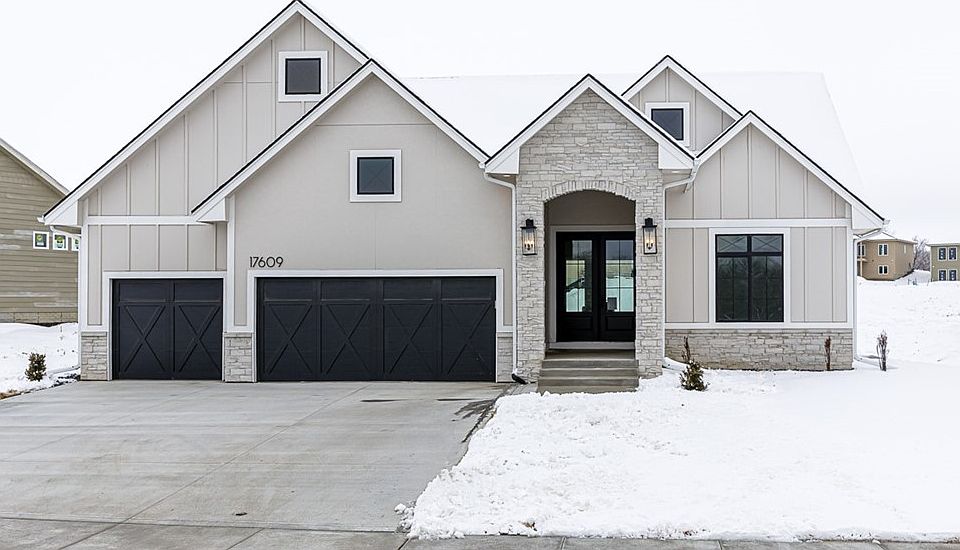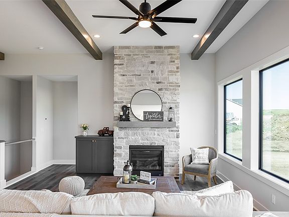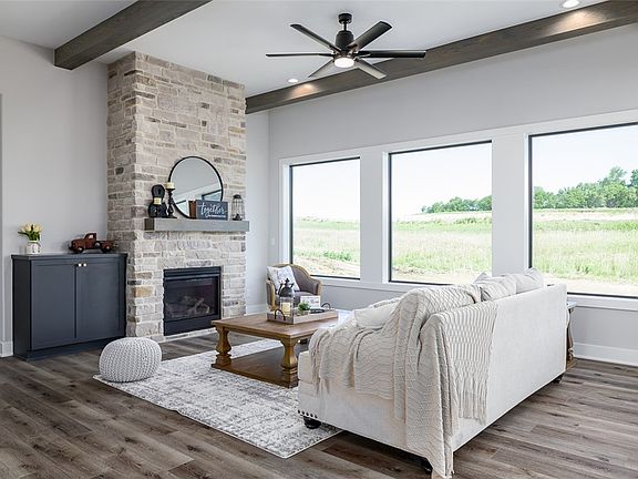 Welcome to Shadow Creek!! The WOW factor is undeniable in the style of this KRM custom Rosemont ranch home! 4 bedroom 3 baths. This home is sure to win your heart with the modern farmhouse exterior, which includes corbels, board-n-batten siding and hardi stucco accents, arched front double door entry, hardie siding and modern house numbers. The remarkable kitchen has plenty of counter space, custom drywall hood, cabinet to the ceiling, open shelving and tons of storage with its huge walk in pantry with custom trim built shelving and the cabinet for the microwave. Home has large windows and triple slider off the dining area to the covered deck. Beautifully crafted custom-built lockers in mudroom with cork board and chalk board. Beams in great room and entry. Stunning gas fireplace with built in. Primary suite has dual sinks, tile shower, stool room and a large walk-in closet with direct laundry access. Downstairs you'll find a huge family room with a fun full bar for entertaining, plus two additional bedrooms, a bath, & plenty of space for storage. Lots of trim detail in this home. Few more fun details, 11' ceiling in great room and entry, 9' ceiling in lower level. Garage is insulated. Exceptional builder warranty & no closing cost option with preferred lender. Home is complete and move in ready.