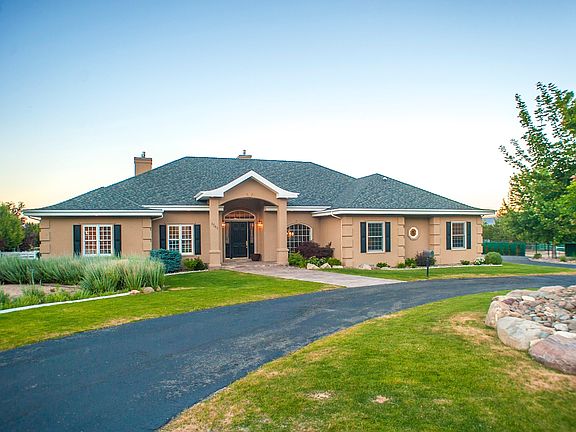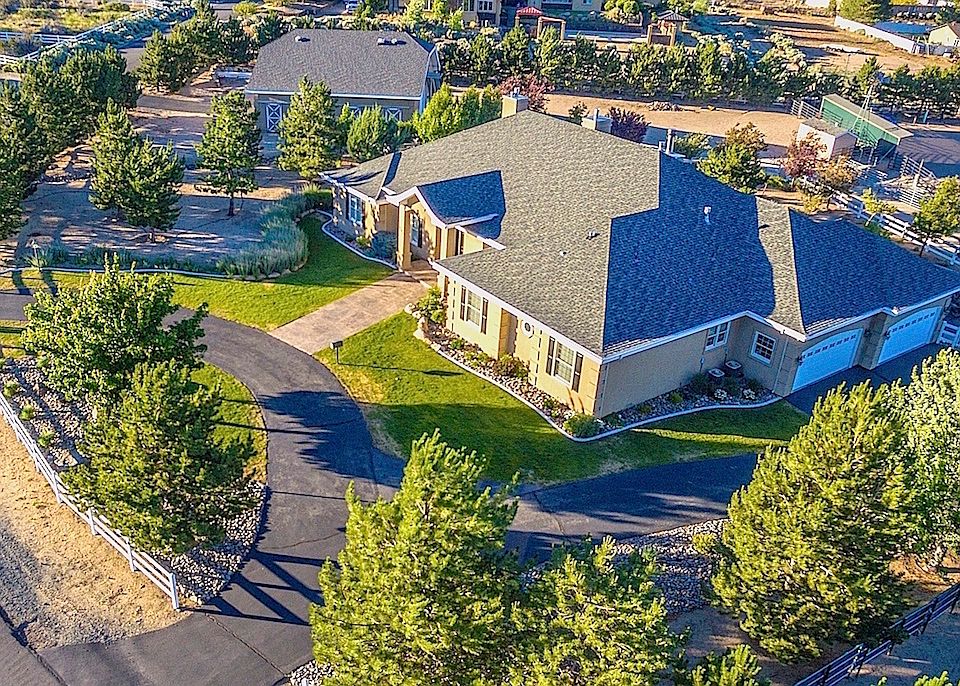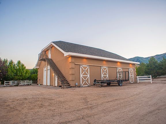 This Equestrian estate is located in the prestigious and sought after west side of Carson City. The entire perimeter of the 2.8 acre lot is fully fenced with split rail vinyl fencing and is tree lined with a variety of mature trees for ultimate privacy. The property includes a professional riding arena that is equipped with lights and a sprinkler system that will water the arena in approximately 5 minutes utilizing the 5,000 gallon underground water tank. The 8-stall barn features a workshop area, both 220 and 110 volt electricity, dual 12' doors for RV parking, and an upstairs apartment with a kitchenette (not included in SF). You will marvel in the comfort of the 3,541 square foot, one-story French Country residence that was custom built by Peter Zemp. The open kitchen features high end appliances, beautiful custom cabinetry with matching refrigerator, large island with a cook top, double ovens, built-in microwave, walk-in pantry, breakfast bar, and breakfast nook. The master suite boasts a spa-like bathroom with dual vanities, clawfoot tub that offers a spectacular mountain view, walk-in steam shower, and 2 walk-in closets. The master has stylish French doors accented above with arched windows that lead to the spacious covered patio complete with a custom 10? pizza oven and a large wood burning fireplace.