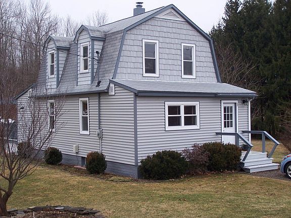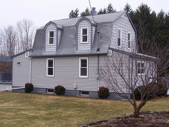 Farmhouse that has many updates and improvements. Hardwood floors and ceramic tile throughout. Remodeled Kitchen and Bath. Custom cabinets and closets throughout the whole house to take advantage of every space. Attractive exterior with vinyl siding and newer windows. Large rear deck overlooking flower gardens and tall pines. Privacy on over 3.5 acres. Fifteen minute drive to Corning, Horseheads or Watkins Glen. Shed by tall pines does not convey.