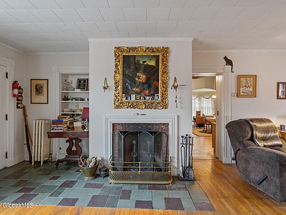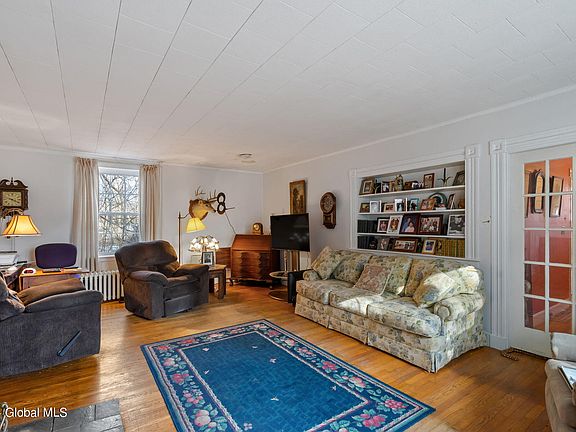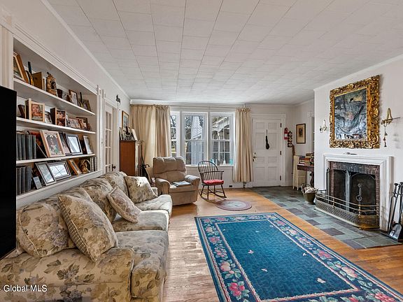 An 1858 brick Colonial with charm and grace of bygone years. Features: living room w/fireplace, formal dining room, kitchen w/fireplace. Total of 5 bedrooms(1 bedroom on 1st floor), total of 2 baths (1 bath on 1st floor) office on 2nd floor. Original hardwood flooring. Full basement. New steam furnace & hot water tank. Roof is 4 years old. Two car garage, 4.45. acres. Town water. Septic system. Also seller is selling antique furniture & other pieces.
