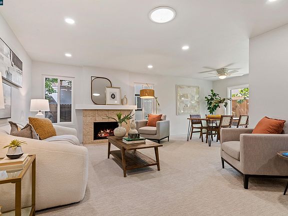 Remodeled and updated 4 bedroom / 3 bathroom charming rancher located at the end of a cul de sac in desirable Carriage Square. Spacious & Remodeled Kitchen features granite countertop, recessed lights, hardwood floors and is adjoining the large dining room. The expansive Formal Living Room has lots of natural light with custom fireplace, recessed lights & recently installed carpet. The spacious Primary Bedroom features windows on three walls and updated Primary Bathroom. Three additional bedrooms are near primary with one featuring sliding door to yard, one with en-suite bathroom & one ideal for office with view of front of house. Enjoy the large backyard with entertaining deck, large grass play area, vegetable gardens, spacious side yard, multiple gardening sheds (one could be converted to home office). Convenient Walnut Creek location, near the freeway, BART, Heather Farms, Schools, Trails, Shopping & much more.