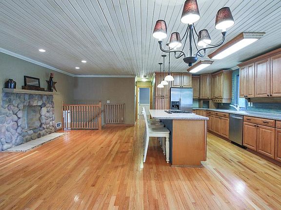 Great entertainment home with three living areas. Property features include: a vaulted master BR w/ private full bath & jetted tub, an updated open design kitchen w/oversized island, granite and SS appliances, a work shop with in floor heat, a extra long parking pad ideal for boat or trailer, a fin LL includes a family RM and a spacious recreation RM, 2 wood burning Fplc, a deck, paver patio & sport court, a fenced yard and 2 extra large sheds for added storage. Lots of home for the money!!!