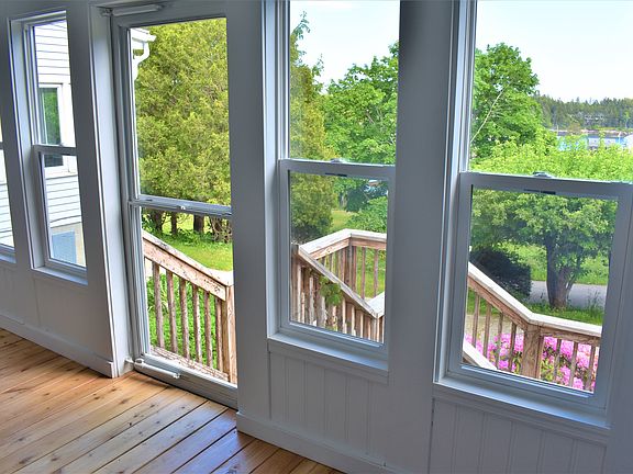 Water views from almost every room of this three unit house are amazing. The home is heated and cooled by the sun as the solar panels provide electricity to the heat pumps in each unit. The two car garage is attached with direct entry and there are an additional 6+ parking spaces next to the house. There is a glass-enclosed porch in the first floor apartment that has views of the water. There are flower gardens, two apple trees and a barbecue area outside.