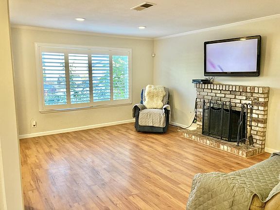 Enjoy the holidays at Home! Your home this year the beautiful tree lined streets welcome family and friends to the ideal location close to shopping, dining, schools, parks, banking and transportation. The front door opens to airy, open floor plan, and welcoming spacious living room with rustic wood burning fireplace next to the formal dining area with glass sliders to the backyard paradise: vegetable garden, fruit and avocado trees, water features, stone walkways, grassy area for kids and pets, and custom dog run or hot house. Home upgrades include double paned windows, plantation shutters, laminate flooring, crown moulding, LED can lighting, new Furnace and H20 Heater, perimeter security system, Vivint solar system, upgraded bathrooms with newer vanities & tile flooring.