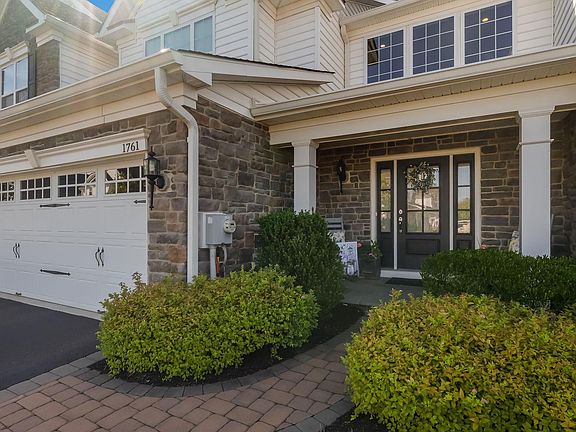 Welcome to 1761 Mulberry Way, situated in the exclusive Regency at Yardley, an active-adult 55+ community offering a lifestyle of sophistication and comfort. Situated on a premium lot overlooking a pond, this luxury Strathmere model carriage house with covered Bluestone entry and custom paver sidewalk greets you with a stately foyer framed by an elegant two-story living room and dining room complete with custom crown molding and wainscoting. Accentuated with Mullican hand scraped maple hardwood floors with cappuccino finish throughout. There are nine-foot ceilings on the first floor, a Williamsburg oak staircase, the grand entrance sets the tone for this impeccable home. The extended family room is a masterpiece of design, boasting a dramatic vaulted ceiling and providing a spacious yet intimate gathering space for family and friends. The gourmet kitchen with granite counter tops, farmhouse sink including matching counter stools, is a culinary delight, featuring top-of-the-line KitchenAid appliances and Century cabinets with Ginger stain adorned with enhanced crown molding, oversized pantry and breakfast area . The kitchen is seamlessly connected to bright & light gracious family room with gas vented fireplace and marble surround. The extended Grand master suite is conveniently located on the first floor and is a sanctuary of luxury. Designed with a recessed entry, double doors for privacy, tray ceiling, shiplap decorative wall, custom millwork and is a spacious sun filled room with natural light, offering a peaceful retreat for relaxation and views of the natural pond. Master bedroom features a large walk-in closet and an opulent Travertine tiled en-suite bathroom. The oversized shower features a frameless clear glass shower enclosure with Travertine walls with custom Listello tile and ceramic shower floor. The first floor also hosts a tucked-away laundry room and conveniently located powder room. Second floor houses a spacious loft that overlooks the foyer and dining room below, providing an additional living area and office space. The are two additional guest rooms, one complete with bunkbeds for the grand kids. There is a hobby room to escape to for your creative moments. Outdoors, the oversized Bluestone patio is tastefully landscaped and features custom lighting and sitting wall with downspout extensions, creating an ideal setting for alfresco dining or evening relaxation. Additional features of this well-maintained home include, upgraded ceiling fans throughout, a 16-foot wide garage door and automatic fire sprinklers for added safety. More than $150,000 in luxurious upgrades- call listing agent for the detailed list. As a resident of the Regency at Yardley community, you'll enjoy a wealth of amenities. The gated community features a 12,000+ sq. ft. clubhouse with indoor and outdoor pools, sports courts, and wellness facilities, all maintained by the Homeowners Association for your convenience. Strategically located in Lower Makefield Township, Bucks County, Pennsylvania, this property offers easy access to New York City, Philadelphia, and Princeton via Route 1 and I-95. A range of entertainment options, including golf courses and cultural venues, are within easy reach. Discover luxury and convenience at 1761 Mulberry Way. Schedule your private viewing today to experience this remarkable lifestyle for yourself.