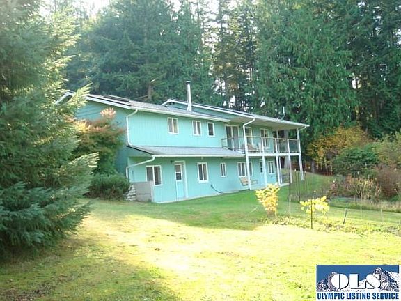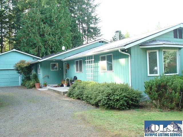 BEAUTIFUL WOODLAND SETTING! It doesn't get much better than this rolling, parked-out 5.6 acres in Gardiner. Towering trees, creek, pond - ornamental trees and shrubs, garden area, fruit trees and berries. All with a stunning view to Discovery Bay. Nicely maintained, daylight basement home features all living spaces on the entry level w/bonus space downstairs. Special features include a living room wood stove, galley kitchen, HUGE laundry and attached 2 car garage w/hot tub room and detached carport.