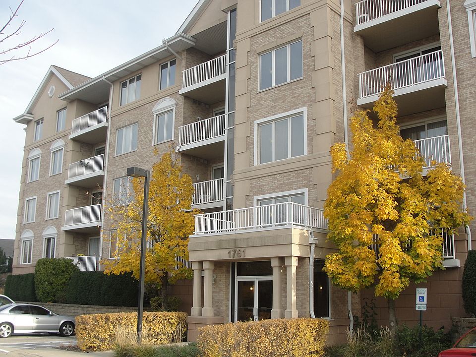 Luxurious & Immaculate corner unit with two private balconies with beautiful Pond/Fountains. Two Bedrooms, one Master Suite with walk-in closet & Master Bath. An open Floor Plan, with high ceilings. Large Living Room with separate Dining Room. Upgraded Kitchen with lots of 48" Natural Cherry cabinets & stunning Granite Counter Tops. Hardwood/Ceramic floors, Pella windows & sliding doors. Laundry facility within Unit. Like new appliances with dishwasher. Sprinkler system, additional storage & Heated Garage Parking! Near highway, transportation, excellent schools, hospital & shopping. A MUST SEE! Calls from interest primary buyers only.