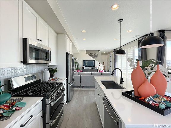 **!!MOVE-IN READY MODEL HOME!!** This inspired Chicago model home is waiting to impress with two stories of smartly designed living spaces, upgraded finishes and a maintenance free lifestyle. An inviting front porch welcomes you into a well-appointed kitchen boasting an extended island, a roomy pantry, and stainless-steel appliances, including a French door refrigerator and a gas range with double oven with an adjacent dining room. Just beyond is an open living room with access to a relaxing covered patio and a powder room rounds out the main floor. Upstairs you’ll find a lavish primary suite showcasing a walk-in closet and a private bath with double sinks, a central laundry and two additional bedrooms with a shared bath. This paired home also offers several upgrades including quartz countertops throughout, pendant lights at the kitchen island, additional windows in the primary bedroom and secondary bath as well as premium cabinets with soft close drawers. **Ask about our special offers. Call 303.850.5757 to schedule a tour today!**