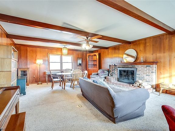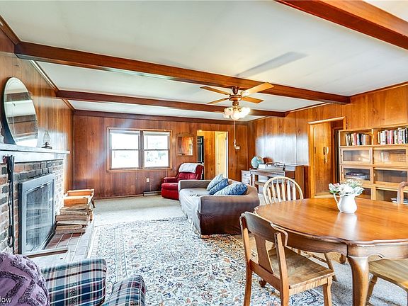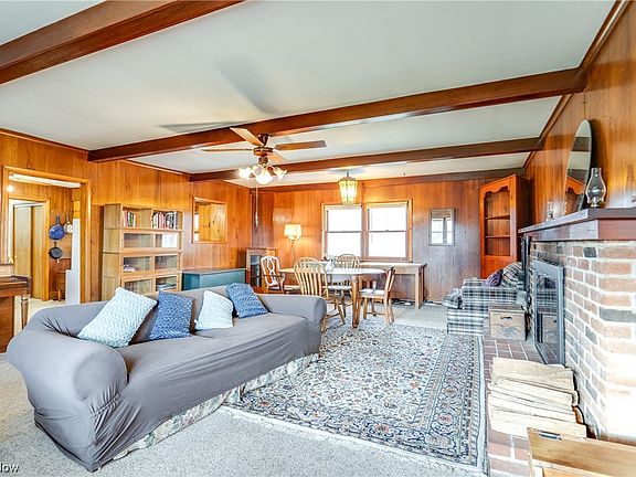 Welcome to this cozy bungalow nestled on a spacious two-acre lot. As you approach the home, a welcoming front porch invites you to enter and discover the warmth within. The first floor of this cozy abode features a well-designed kitchen adorned with laminate counters, complemented by wood cabinetry. The laminate flooring adds a touch of modernity, while the wood beams in the large living room provide a rustic charm. Picture yourself curled by the wood-burning fireplace, enjoying the crackling warmth on a chilly evening. On this first floor, you'll find an office space that offers a quiet retreat for work or study and a thoughtfully designed bedroom. The full bath boasts a walk-in shower and a single vanity. Venturing upstairs, you'll discover two additional bedrooms offering a comfortable and private space. The second full bath on this floor features a single shower and vanity. The basement, though unfinished, generously provides ample storage space and easy access to the exterior. Outside, the home is surrounded by nature on its expansive two-acre lot. Relax on the back deck, which provides treed views. A 21 x 30 barn adds a touch of rural charm and utility, providing additional storage or workspace. The two-car attached garage ensures convenience and protection for your vehicles. Don't miss your chance; schedule your showing today! SELLING AS IS