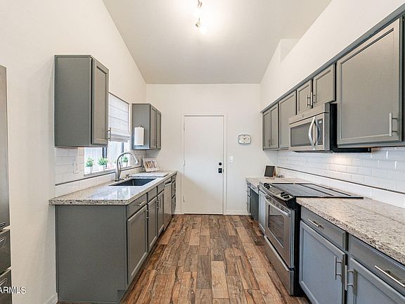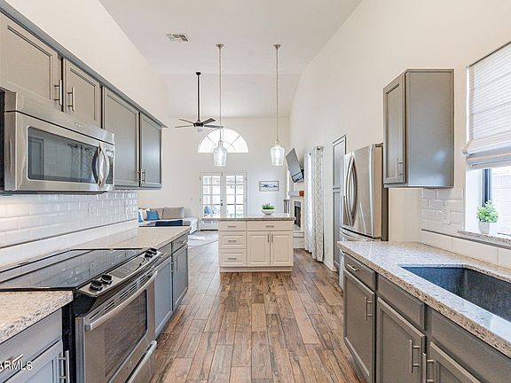 Nestled in the heart of Chandler, this 3 bedroom, 2 bathroom home offers convenient access to shopping, dining, entertainment, and top-rated schools, making it ideal for families and professionals alike. Step inside to find a thoughtfully designed interior featuring newer paint, new light fixtures, new ceiling fans, a retractable work bench, upscale finishes, and gorgeous flooring throughout. The spacious living areas are bathed in natural light, creating an inviting atmosphere for relaxation and entertainment. The chef-inspired kitchen is a culinary delight, boasting modern stainless steel appliances, granite countertops, and ample storage space. Whether you're preparing a casual meal or hosting a dinner party, this kitchen has everything you need. Step outside to your private outdoor retreat, featuring an oversized covered patio and easy to maintain turf backyard. Enjoy alfresco dining, gardening, or simply lounging in the Arizona sunshine. Residents of Andersen Springs community, can also enjoy nearby parks, playgrounds, and community events, creating a true sense of belonging. This one won't last long!