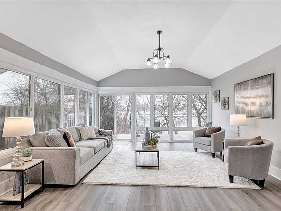 Fully updated 2 bed, 2 bath home on the Fox River! Brand new 2 stall garage with a new sub panel. Brand new patio with retaining walls (43'x12'). All new plumbing, electrical and panels, upper windows, water heater, added stone veneer siding and cedar shake. Remodeled porch. Converted a bedroom into a master bath and office. Completely remodeled kitchen with new layout. New flooring, light fixtures, and added a wet bar. Remodeled lower bath with new layout, updated landscape with mulch pathway to water. New closets added by back entry and in basements rec room. All new int. doors and casings.