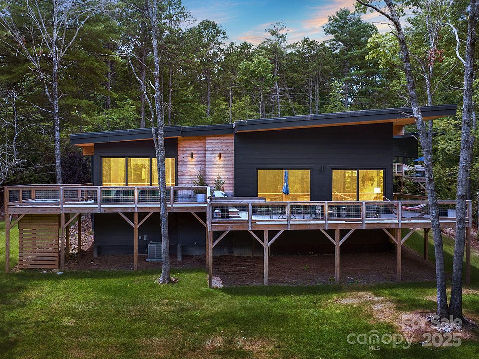 Contemporary mountain home offers the best in design, features and outdoor living. All furniture and furnishings convey! This modern architectural showplace features sleek lines, open spaces, abundant windows and a large wrap-around deck, gas firepit and hot tub. You will find large bedrooms, beautifully designed bathrooms and both large and private living spaces. Outdoors, you will enjoy the expansive backyard and being nestled amongst the wooded lot. This welcoming environment is just minutes from Brevard, Pisgah Forest and Dupont Forest, enabling you to enjoy the restaurants, breweries and and arts and crafts culture that Western NC is known for. Whether you are looking for a new home, a vacation home or an income producing property, this one checks all the boxes! Don't miss this unique opportunity to enjoy contemporary mountain living!