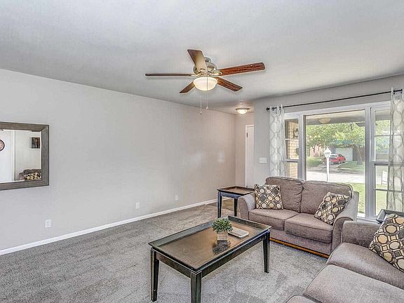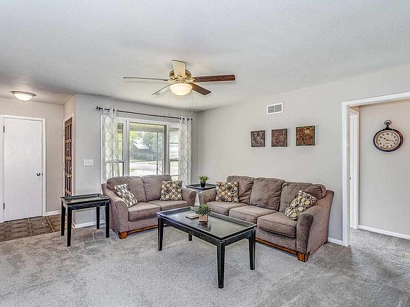 This 3 bedroom brick ranch in east Wichita is your dream home! Located on a corner lot, it features tons of beautiful updates and great amenities. Pull into the driveway and notice the 2 car garage and the unique built-in brick planter box in the front. Step up to the covered front porch and enter the home to find a bright living room with big picture windows. Check out the brand new carpet, new flooring, and fresh, neutral paint all throughout! Through the formal dining room you'll find a SECOND living room! This family room has a brick fireplace and built-in shelves, and it's the perfect space for a sitting room or an entertainment area. The contemporary kitchen features tons of cabinet space, subway tile backsplash, a desk or breakfast nook counter, and stainless appliances that are all included. Three bright and spacious bedrooms and a fully remodeled bathroom complete this great layout. Surrounded by four local parks and close to highway access, restaurants, and shopping, you have found a fantastic home in a convenient location. Schedule your private showing today and come see it before it's gone!