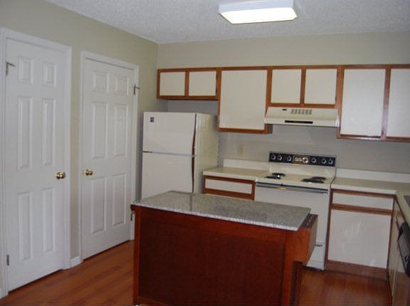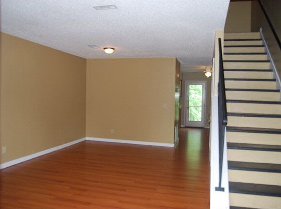 Totally updated Brookes Condo! New Laminate wood floors EVERYWHERE (including bedrooms, bathrooms, etc!) Updated paint, light and plumbing fixtures throughout! End unit with extra windows in both upstairs bedrooms and very private views from patio. Island in kitchen remains, which is a great addition to the open kitchen/dining room area. All appliances remain.