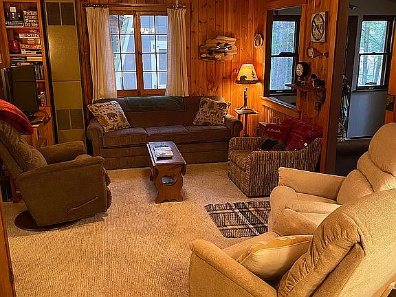 Sunsets, tranquil bay, heavily wooded site makes this home a must see on the Eagle River Chain. A three season cabin consisting of 2 bedrooms, 2 bathrooms and 3 seasons porch is ideal for family enjoyment and access to the chain. Property has drilled well, new septic system, a detached garage and knotty pine interior. In addition to the southwest exposure, a permanent pier andcovered boat lift awaits your boat