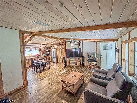 Escape to the serene countryside with this 3-bed, 2-bath home on 5 acres in Fort Myers! Located in Willow Brook Farms, this property is a perfect blend of charm and modern comfort. The open floor plan features a spacious kitchen with custom Poplar wood cabinets, butcher block counters, and a farmhouse sink. The home boasts cedar beams, vaulted ceilings, and vinyl plank flooring. Large gravel driveway accommodates RV, Trailers, and multiple cars, shop and carport attached to home. The property includes a 7-stall barn, six cross-electric fenced pastures for animals. Mature Oak Trees add character, and the home has a front yard sprinkler system. With an 800-acre private preserve as a neighbor, this property offers a peaceful and private country lifestyle in Fort Myers.