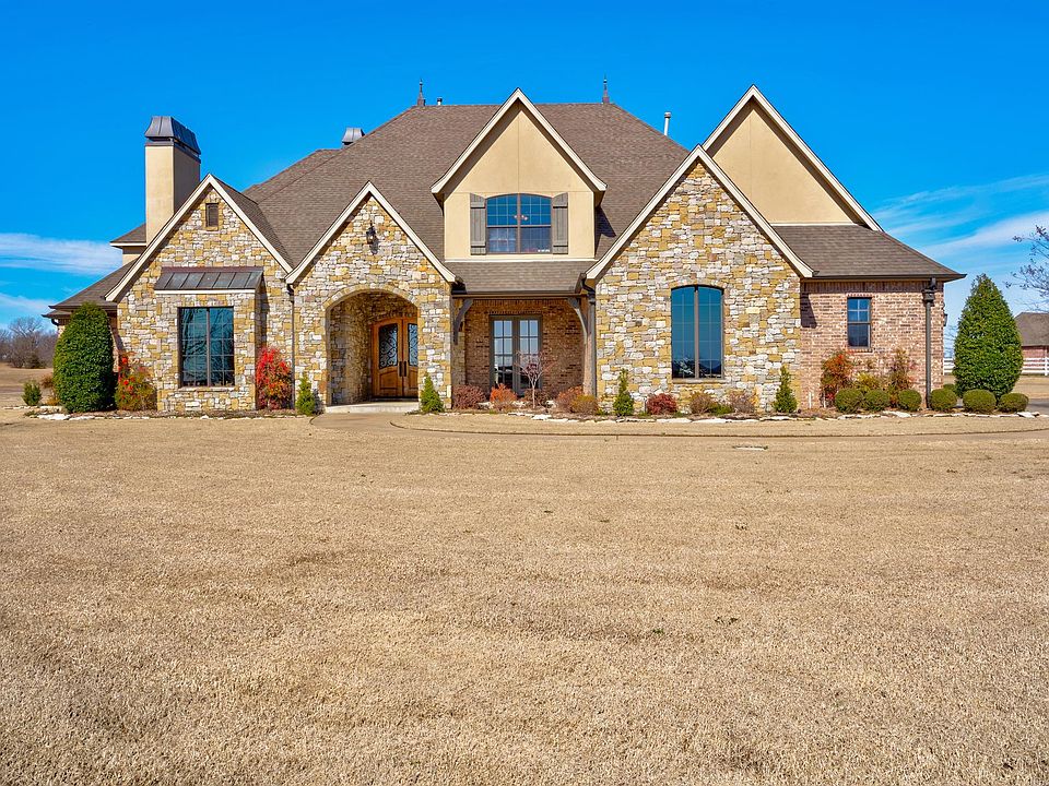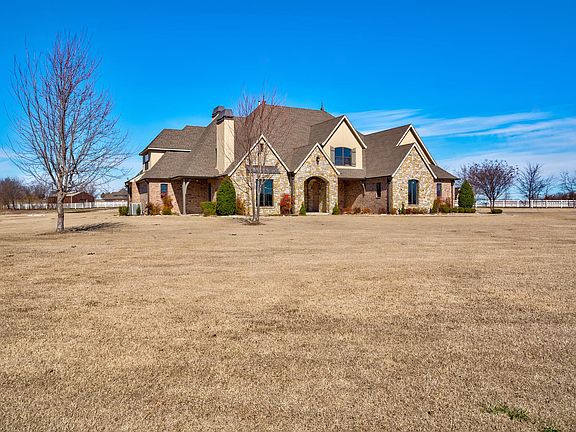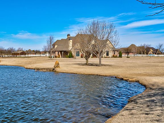 Fully updated with new paint, newly finished hardwoods, new carpet, striking light fixtures. Open mother in law plan with Juliet balcony, modern champagne chandeliers. Private baths for every bedroom. The water view and manicured lawn make this stunning country estate in close proximity to south Tulsa a must see. Plenty of room to add a pool.