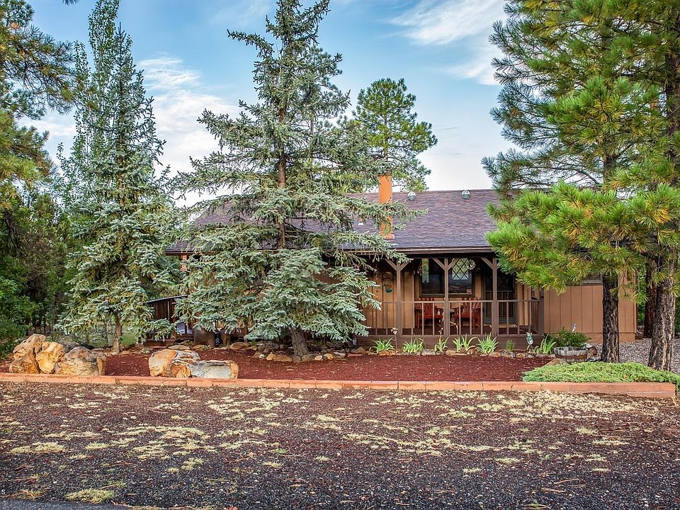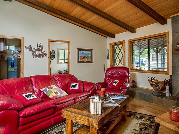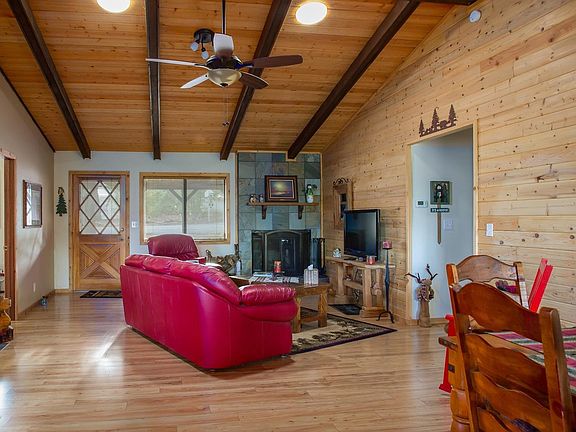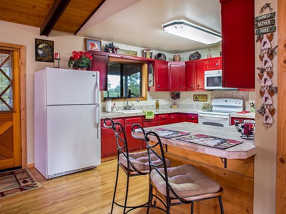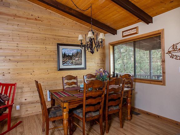 Mountain Cabin on One Level with Covered Decks front and rear, in the highly desirable Animal Hill section of Pinewood. Great room with wood burning fireplace, vaulted ceilings, and forest views. Central Heat and Central Air. Updated kitchen with tons of cabinets and lots of counter space. Master suite with walk-in cedar closet and door that leads out to large covered deck. Ceiling fans and wood blinds throughout. Laundry/storage room with washer/dryer. Large private rear deck with forest views. Comes with a One Year Home Warranty.