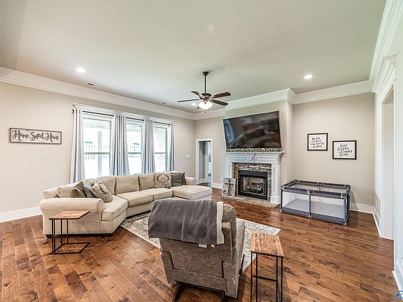 - Features: 10’ + Ceiling, Ceiling Fan(s), Crown Molding, Fireplace, Recessed Lighting, Smooth Ceiling, Wood Floor