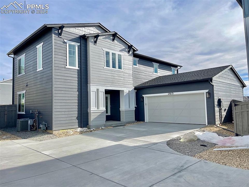 Ready now! Marigold 2-story plan in The Foursquare Collection at Monument Junction. 3 bedroom, 3 bath, 2 car garage home. Step into this beautiful two-story home and be greeted by a thoughtfully designed layout. Upon entry, you'll find stairs to the upper floor to one side and a convenient ensuite bedroom and bath directly ahead. To the other side, an open and inviting great room seamlessly connects to the dining area and kitchen, creating a perfect space for entertaining and everyday living. The kitchen features a spacious island with seating for four, a pantry for ample storage, and elegant shale gray painted cabinets paired with stunning Bianco Tiza Quartz countertops. Large sliding glass doors off the kitchen lead to an extended patio, perfect for outdoor dining and relaxation. Upstairs, the master bedroom offers a serene retreat with a large walk-in closet and a luxurious master bath. The master bath boasts an enlarged shower and a long vanity with two sinks, providing both comfort and convenience. A second bedroom is located on the opposite side of the home, ensuring privacy for all occupants. The large laundry room is equipped with cabinets, a folding countertop, and a linen closet, making laundry tasks a breeze. The home comes equipped with air conditioning, smart home package, and active radon mitigation system. Full yard landscaping and a fence provide a beautifully manicured yard and privacy. This home is nestled in a beautiful brand-new, covenant-protected community in Monument. Seller incentives are available.