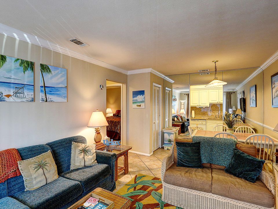 Beautiful 2BR/1BA condo, ground floor, across the street from the beach. Perfect for second home or vacation rental/income property. Beach access across the street, can be seen from unit! Less than 3 minute walk to beach from front door. Five minute drive to Pier Park, plus quick access to Back Beach. Amenities include pools, hot tub, shuffleboard, exercise room, BBQ grills, and on site laundry. This unit is bargain priced and is a must see!
