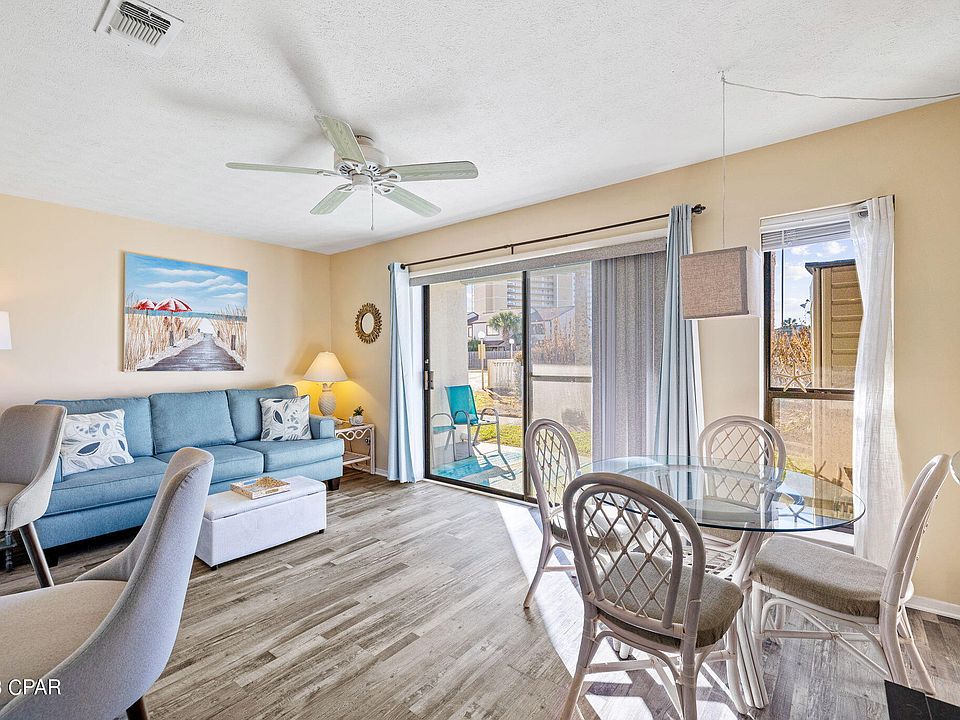Welcome to Endless Summer, a laid-back community centrally located on the quiet, West End of Panama City Beach. A stone's throw from the beautiful white sandy beaches and emerald waters, this beautifully decorated, ground floor unit boasts a spacious and open layout, with luxury vinyl plank flooring throughout as well as a private patio overlooking one of the two pools on site. Having great rental projections for its price and being sold fully furnished, this is a perfect investment opportunity for someone looking to make money while enjoying the benefits of owning at the beach. Although tucked away from the hustle and bustle, Endless Summer is a quick 5-minute drive Pier Park and 10 minute drive to the start of 30A. Don't miss out on this opportunity – schedule a showing today!
