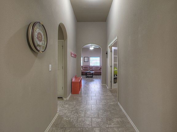 Lovely one story w/new wood grain tile floors in large vaulted family room that is open to kitchen & eating area, breakfast bar, granite counters, stainless appliances. Great for entertaining. Separate office/flex room has French Doors off entry. Guest bdrm w/private bath. 2 additional bdrms, separate w/hall bath. Master has private bath, double vanity & separate shower. 3 car garage, 1 separate could also be used for storage. Fully fenced backyard w/covered patio. Neighborhood pool & park.