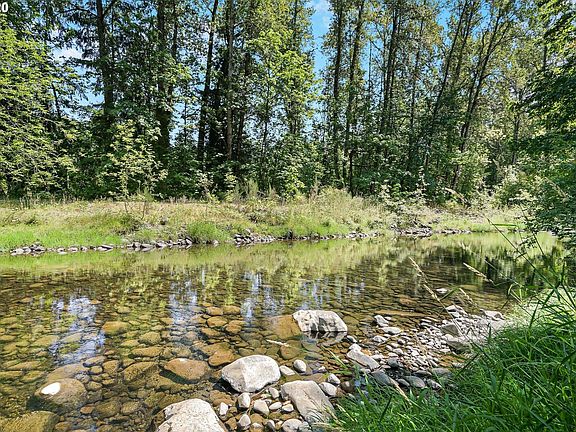 HOME & SHOP ON THE CREEK! Shaded creek setting with large fir and cedar trees. Located just minutes NE of Silverton on the Abiqua Creek. This split level home is 3BR, 2BA, w/ 2182 sqft. Updated kitchen, baths, and flooring. The original home was built in 1982. Fireplace and vaulted ceilings in the big LV Rm. Attached two car garage along with a 30 x 50 metal shop. Usable circular drive makes access easy for RV and trailers. Lots of storage. Sit on back deck and enjoy the peaceful creek.