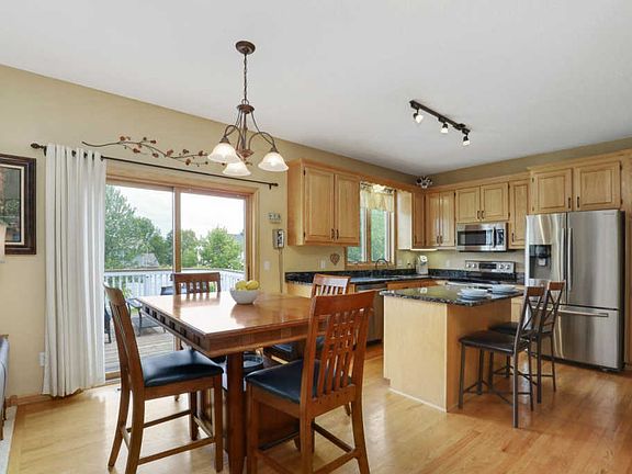 Beautiful two story home in Lakeville! Move right into this 5 bed, 4 bath, 3 car garage home. This home has it all! Four bedrooms on the upper level, hardwood floors, updated kitchen, formal dining room, two fireplaces, a deck and patio overlooking the flat backyard. The kitchen offers a large center island, granite countertops and stainless steel appliances. Head upstairs to the four bedrooms on one level and the private master suite. The spacious master bedroom features vaulted ceilings, two walk-in closets and a private bathroom with dual vanities, plus a separate tub and shower. The lower level offers an additional bedroom, spacious recreation room, and walkout to the backyard. Recent updates include new siding, rear home windows, garage doors, master shower door (2020) and new roof (2019). Convenient location to shopping, dining and recreation. Easy access to I-35W and Dodd Blvd. Do not miss your opportunity!