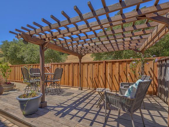 Curb appeal and mature trees welcome you to this spacious single story home in Las Palmas neighborhood. 3 bedrooms, 2 baths and open floor plan. The kitchen-family room with high ceilings, wood-burning fireplace and lots of light with French doors opening to private and fenced back yard. Kitchen has cozy breakfast nook with built in corner bench space with storage, island with double sink and room for counter dining, stainless steel appliances, lots of storage and space for multiple chefs. Back yard is well manicured, with drought resistant and low maintenance garden, patio and deck area with pergola perfect for entertaining. Formal living room/dining area with high ceilings. Master suite with access to back patio, walk in closet and master bath offering double sink vanity. Inside laundry room. Laminate and tile flooring, tile roof. Nearby to schools, park, walking, hiking, and biking from your home. Enjoy the sunbelt off Highway 68!
