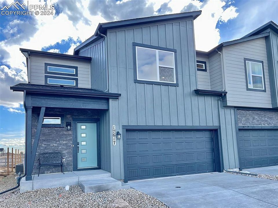Ready now! Mountain 2-story plan with 2 car garage in the new Monument Junction Cadence Collection neighborhood. 2 bedroom, loft, 2.5 bath home. Modern exterior. This home is one side of a duplex. Kitchen features maple cabinets in a Shale finish, elegant Bianco Tiza Quartz countertops, island, pantry, and stainless steel appliances including gas range and refrigerator. Off of the great room there is an under-stairs storage closet and separate coat closet. The upper level master bath showcases a shower with seat and sleek frameless shower surround, and double sinks. The master bedroom is separated from the additional bedroom and loft creating a quiet, serene space. The upper level hallway includes an area which can be used as a pocket office/work zone. Home comes equipped with air conditioning, and smart home package. Home is located in a covenant controlled community. Seller incentives available.
