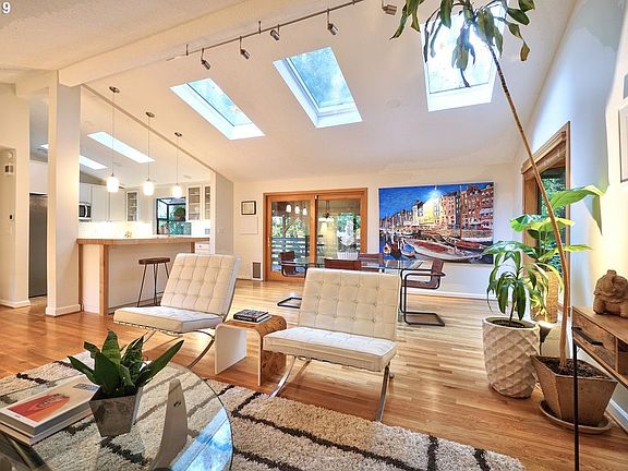 Stunning, thoughtfully designed home on private, rare double lot is 1/2 acre with 4 deeded lake easements is paradise in the Northwest! Vaulted ceilings and skylights with open concept living, new quartz countertops with white subway backsplash. Brand new carpet throughout. Downstairs office has built-ins, leads to private oasis and decks. Finished shop with full bath allows for flexibility, currently used as ADU. Entertainers dream!