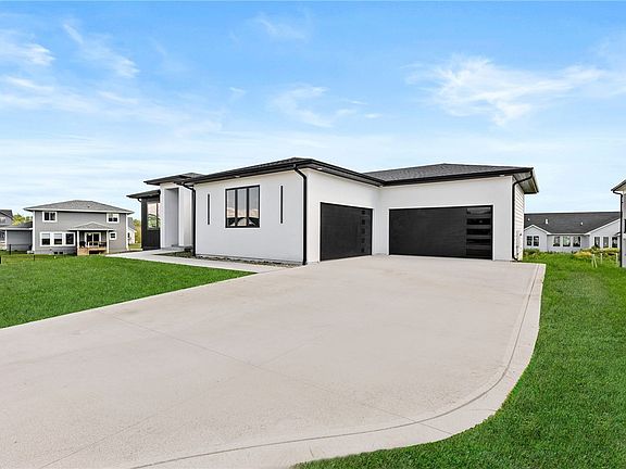 Beautiful 5 bed/4 bath, over 4,000 Sq Ft walkout ranch on over a third of an acre in Clive’s sought after, Shadow Creek Community. Upon entering, you're welcomed by a grand entry to a spacious open floor plan w/ Luxury Vinyl flooring, oversized windows, sprawling ceilings, and custom trim work throughout (no wire racks in this home!). The kitchen features soft close cabinetry, quartz countertops, an oversized quartz waterfall island, walk-in pantry, high end appliances, and a large dining space. 3 bedrooms on the main floor including the primary suite & bath ensuite that features dual vanities, soaker tub, tiled shower & a large custom built walk-in closet. Washer and dryer included in the main level laundry room! The finished walkout lower level boasts a huge family/rec room w/ a custom wet bar, 2 additional bedrooms, full bath with a dual vanity, tons of storage space and a large fitness room/theater room connected to a storm shelter that can also be turned into a spa w/ sauna or wine cellar. 4 car oversized garage with sink, irrigation system, & Waukee schools! All information obtained from Seller and public records.